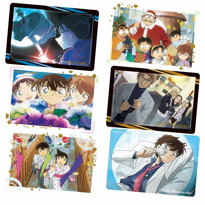 ビジュアルカードは、人気のイラストを使用し、メタリックエンボス加工のかっこいいカードです。スペシャルカードは、江戸川コナン、諸伏高明、大和敢助の描き下ろしイラストを収録!